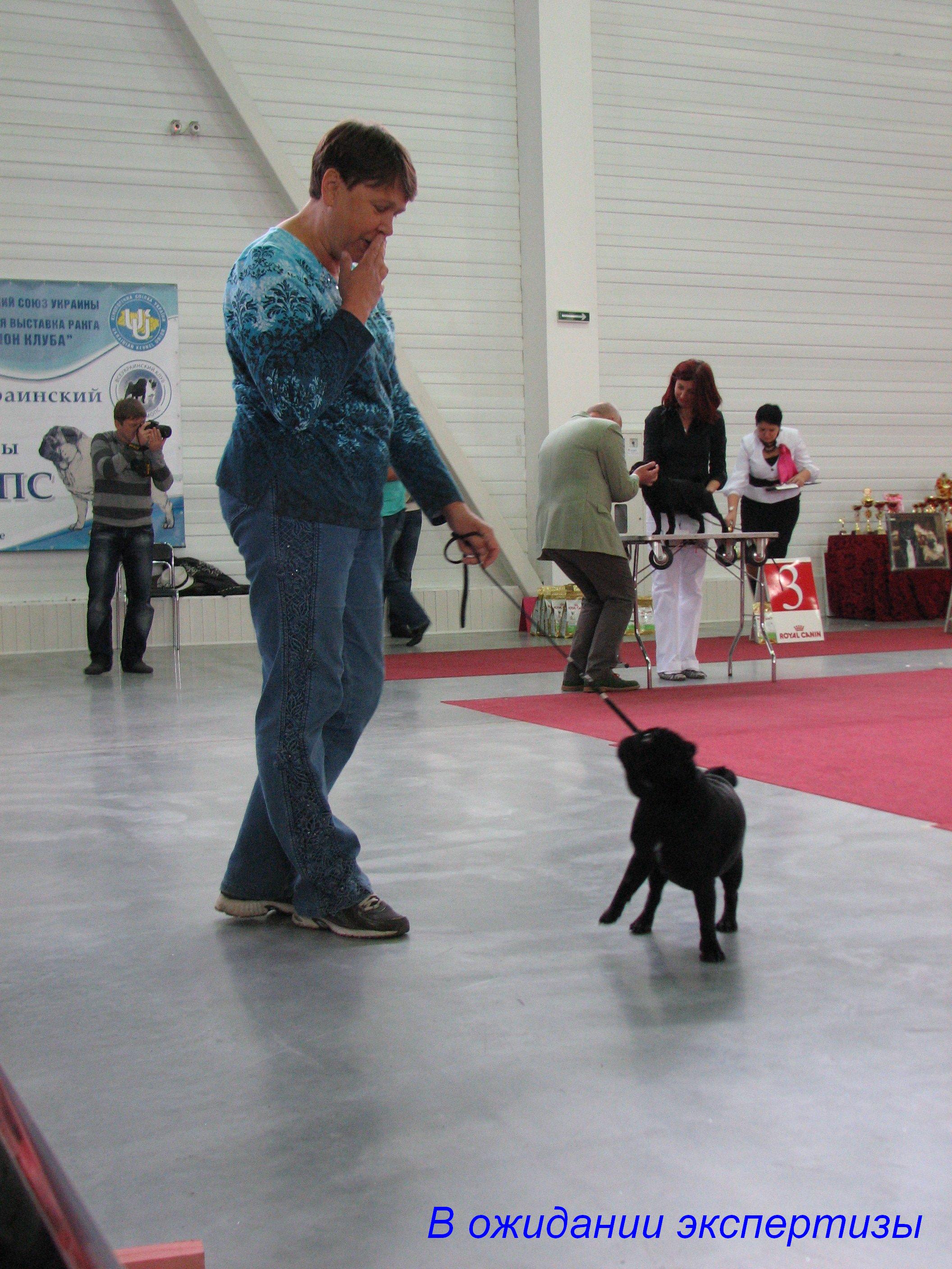 Проблемы возникают, когда НЕ Я! а эксперт смотрит зубы. Мона возражает. Обычно эксперт лезет сам в рот собаке, если ему кажется, что хозяин (хендлер) недостаточно правильно сделал это сам. А если хендлер сам ловко и быстро демонстрирует прикус - обычно они в рот не лезут. Так что надо научиться показать прикус спереди, у мопсов обычно смотрят прикус и количество нижних резцов, к молярам-премолярам там никто не лезет. Прыжки..Обычно это лечится только упорными занятиями, а также если собака очень эмоциональна - обязательно надо дать ей побегать по рингу до начала ринга, дать ей напрыгаться и перед рингом. Есть мопсы, которых ожидание утомляет и они скисают, таких лучше держать в боксе и выводить из бокса сразу на экспертизу. А есть любопытные прыгучие морды, которым перед рингом обязательно надо выпустить из бокса заранее, чтоб она попрыгала, выразила любовь к окружающему миру и в ринг уже шла в более адекватном восприятии реальности )) В ожидании экспертизы тоже надо стараться держать собаку в стойке, если устала - обычно обводят вокруг себя и опять ставят, обводят и ставят. Это только кажется, что эксперт не смотрит по сторонам. А на самом деле они видят всё - и как собака стоит в ожидании - в стойке или как шалтай-болтай.. Даже подсознание отметит хорошую стойку. Особенно это важно для чернышей, как мне кажется. Ибо они яркие и сразу видно, кто как стоит. Темп движения тоже подбирается такой, чтоб собака бежала рысью. Не быстрый, чтоб на галоп не переходила и не медленный, чтоб на шаг не сбилась (или на иноходь, бывают и такие). Увидеть как собака двигается - вы можете со стороны, если с ней побегает по кругу кто-то другой. На самом деле - показ собаки в движении - это самое важное, это ценится выше правильной стойки. В стойке можно умело замаскировать некоторые недостатки, но в движении прямоватые плечи, удлиненный корпус, сближение скакательных суставов - это все будет видно, и это ничем не скрыть. Ну и самое главное - практика и еще раз практика. Смотреть-смотреть-смотреть как делают другие и учиться-учиться-учиться.. Ну оно в теории легко советовать, а на самом деле еще и каждая собака индивидуальна - есть собаки, которым дано выступать, а есть те, ну которым не дано - и все, хоть тресни. У меня вот такая младшая. Уж сколько ни учились, уж сколько ни выставлялись - она просто упорно отказывается стоять в свободной стойке, она прыгает на задних лапах, как в цирке, выпрашивая лакомство, и даже если станет каким-то чудом в стойку - это будет корова на льду, вот так она ухитряется ставить лапы во все стороны)) Ставишь в ручную - тут же скисает, опускает хвост - и в итоге выглядит уныло и печально. Сообщение отредактировал Pinguel - 8.10.2013, 16:09 |