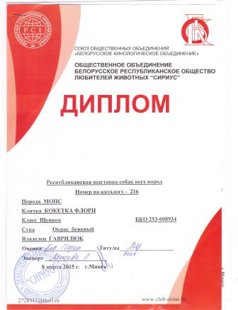 Вчера сходили на первую свою выставку, думали выгонят из-за нашего темпераментного поведения (обгавкали даже мастифов).. (IMG:style_emoticons/default/aggressive.gif) Но на ринге молчали и показывали все, что просил эксперт.. Теперь вот вошли во вкус и приступим к усиленным тренировкам. Нужно отучить Капи гавкать без повода и еще рекомендовано питание облегченное (не урезание в еде, а переход на низко калорийные корма). Может кто-то подскажет? Основное питание: Роял канин юниор. Фотки с выставки вот только нечаянно уничтожила, при копировании, (так жалко) . |