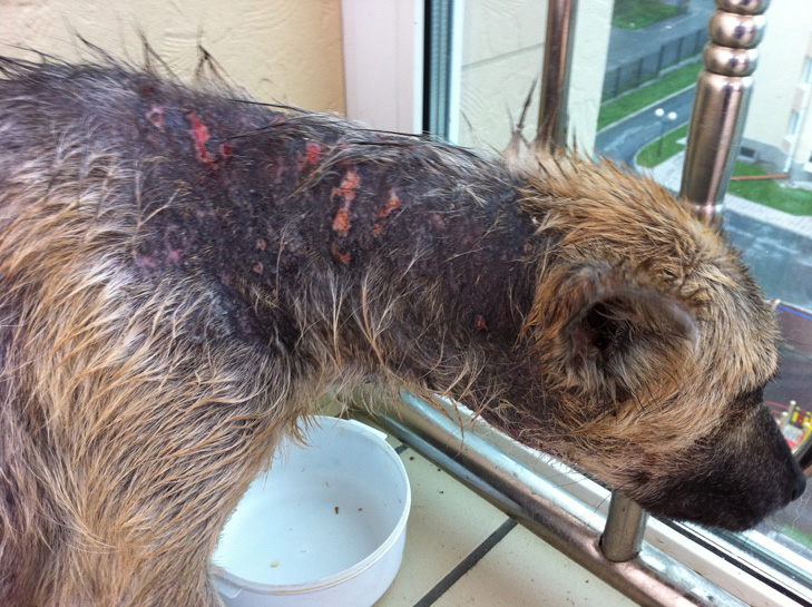 24 мая ко мне обратились с Сахалина по поводу одной собаки. Фотографии прилагаются. Здесь и стафилококк, и демодекоз, и грибы.