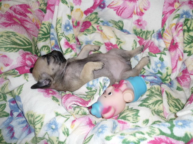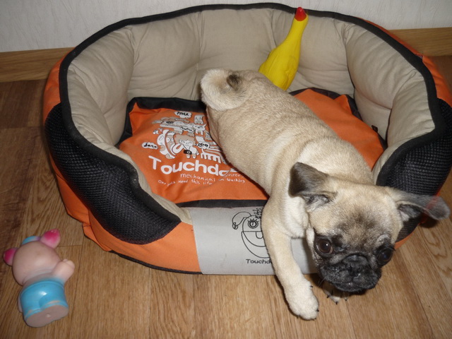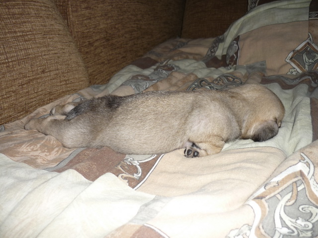 Девочка - огонь! Рита Овен по гороскопу. Очаровательный, милый, живой и очень подвижный детеныш. Недавно к нам приезжали в гости наши заводчики, так даже они были ошарашены натиском шалуньи. Не понятно откуда этот постреленок черпает запасы энергии. А сфотографировать нашу шилопопую малышку вообще не получается. Из 10 снимков - 4 это спина, вид сверху, и 4 - хвостик. Заводчики смеются, говорят - знакомые кадры (IMG:style_emoticons/default/rofl.gif) . А на двух из 10, которые получаются, спящяя мопся и редкий кадр на котором можно мордашку рассмотреть (IMG:style_emoticons/default/biggrin.gif) . Первый день в семье. Рита почти все время спит и ведет себя очень скромно. Мы еще не подозреваем какой сорванец нам достался (IMG:style_emoticons/default/rolleyes.gif) ! А спим мы вот так! И так могём! Ой, держите меня семеро! Нет, держите вдесятером! (IMG:style_emoticons/default/crazy.gif) Раньше даже предположить не могла, что этот маленький комочек может принести столько счастья и радости! Заметила, что несколько дней назад левое ушко "полетело в сторону". Подскажите пожалуйста, может нам ушки пора клеить? |
