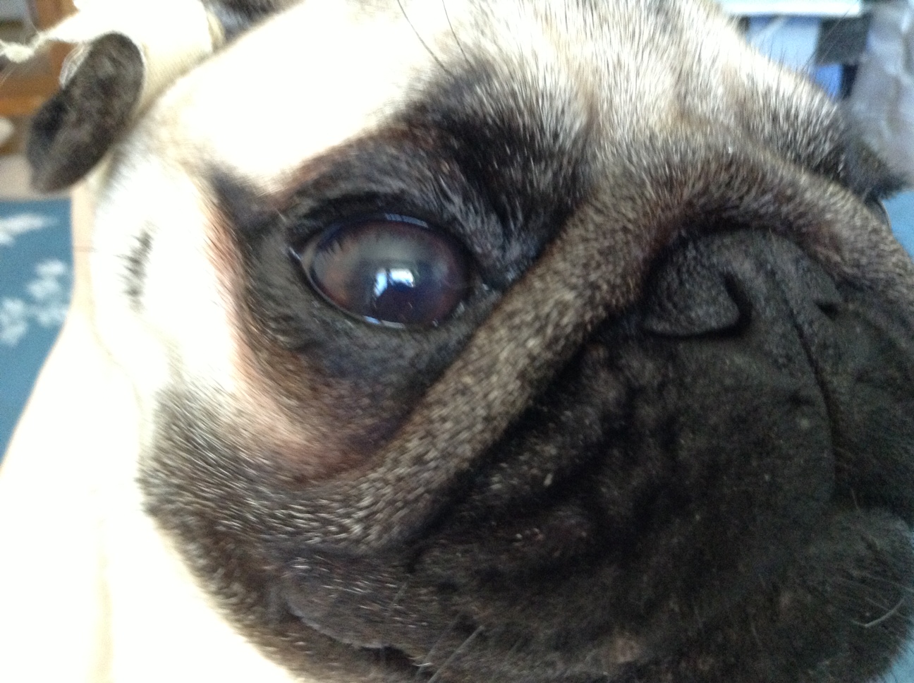 Здравствуйте!Подскажите пожалуйста,у мопса гноятся глаза,капаем анандин,чтобы смыть гной.Помогает на два дня,а потом опять гной.На левом глазике,на белке появилось темное пятно,нигде не ударялся.Помогите.