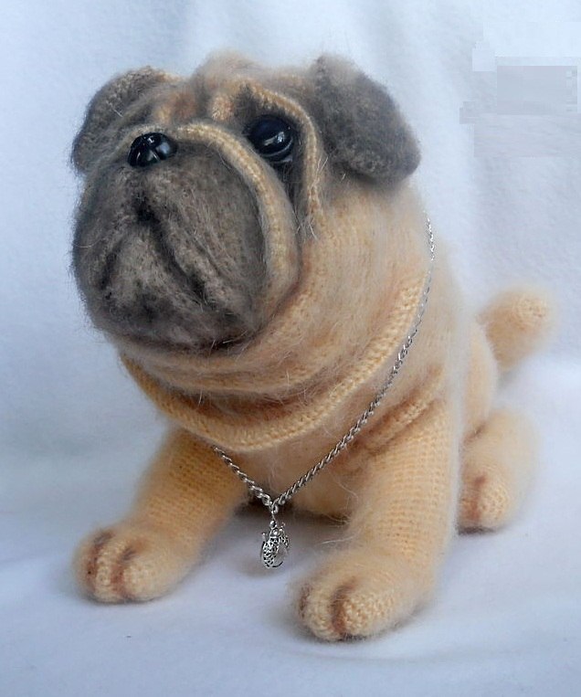Мопсик в холке 18,5 см, в длинну 21 см. Мопсик полностью связан в ручную крючком. Будет верным и любящим другом. Можем связать Мопсика любого цвета. Все вопросы тут или по эл.почте adva(собака)mail.ru |