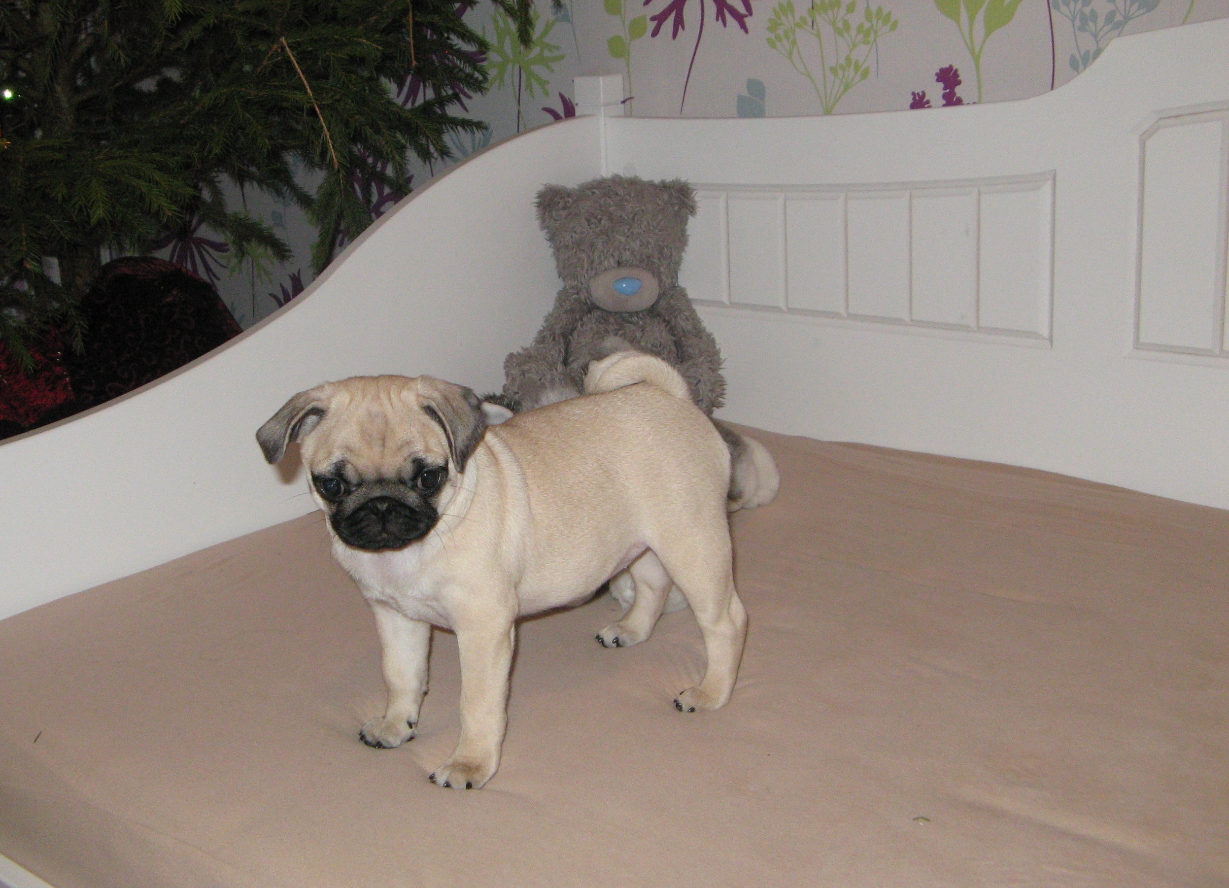 Очень хочется познакомить вас с нашим новым членом семьи! Ее зовут Кора, но я ее называю "2,5 кг счастья и х у л и г а н с т в а ". Причем и то и другое распределяется в ней очень неравномерно:-) Например после сна - это одно сплошное счастье, а бывает такоооое х у л и г а н с т в о, что для счастья места совсем не остается. Так получилось, что хотя у меня раньше уже были собаки, щенок в моей жизни появился первый раз. И оказалось что это совсем другая история. Поэтому у меня море вопросов. Некоторые ответы я уже нашла на сайте, но некоторые пока у меня остались без ответа. Буду благодарна если поможете. 1. у малышки небольшая пупочна грыжа, ветеринар сказал что может пройдет и сама, но пока сказать точно нельзя. вот на этой фотографии видно немножко я прочитала, что можно делать массаж или приклеивать пластырем монетку. Подскажите, каким образом все это делается? где найти информацию? 2. где-то 20-го числа Коре должны сделать прививку, и через несколько дней можно выходить на улицу. Но у нас обычно в конце января начинаются морозы. При какой температуре можно выходить с крохой гулять? надо ли ее одевать? Сколько по времени должны быть прогулки? очень жду совета от опытных "мопсоведов" :-) Сообщение отредактировал Jekaterina - 10.1.2014, 1:20 |
