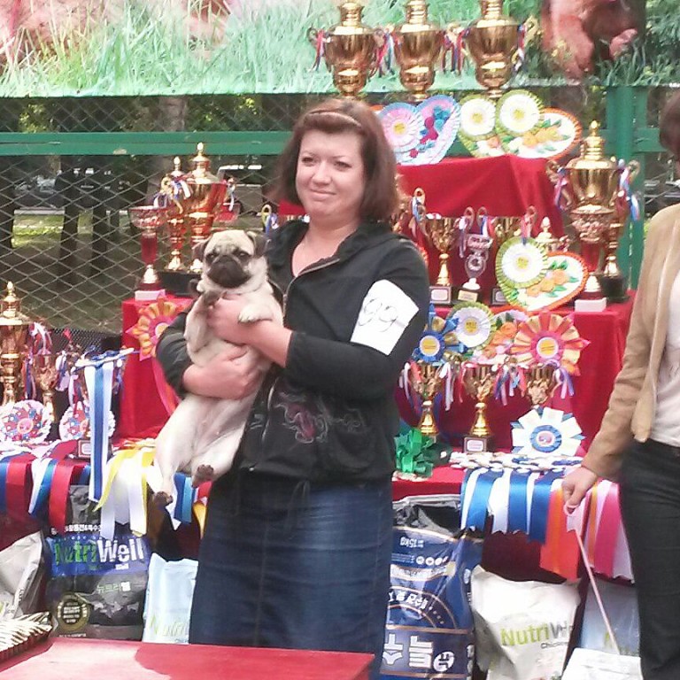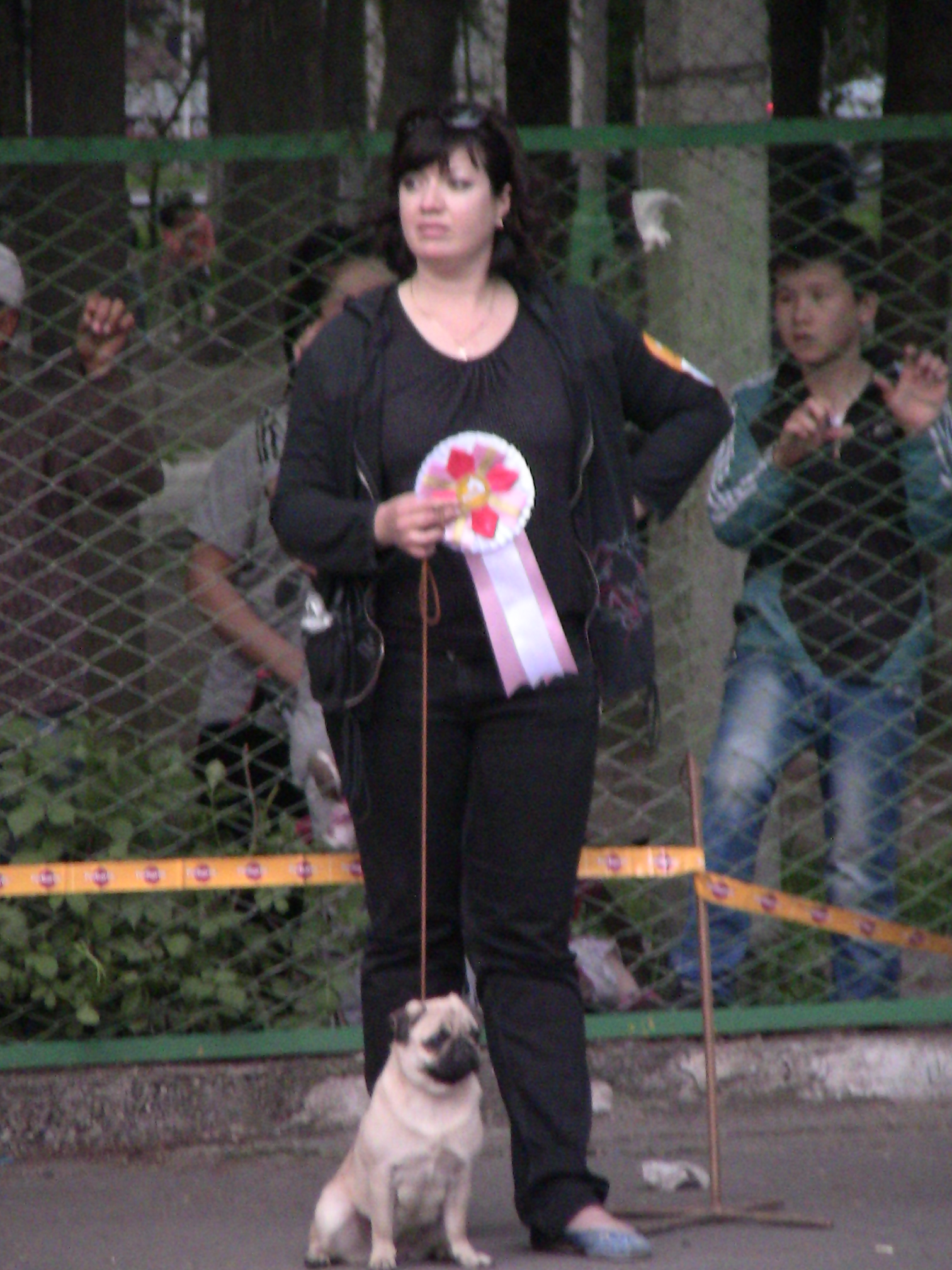 Просим прощения за долгое молчание, но у нас были веские причины! Мы готовились к первой в нашей жизни выставке - что для нашей мопсодевушки, что для нас, ее любящих родителей! Прошерстив весь форум, я до последнего сомневалась, получится ли... Но видимо наши старания и тренировки не прошли даром... Правда в стойке раскручивали хвост (видимо сказалась жара и долгое ожидание, нас даже смотрели не в ринге, а за его пределами), но эксперт нас похвалила, и сказала, что тех кому необходимо выставляться видно сразу (сам себя не похвалишь, от скромности не умрешь (IMG:style_emoticons/default/smile.gif) ). В итоге у нас оценка отлично и первое место в классе щенков среди сук... С кобелями видимо была напряженка, точнее их не было, в итоге мы автоматом прошли в бест... Но в бесте, увы, нам ничего не досталось. Но мы не расстроились, и готовы к новым свершениям. Так что поздравляейте нас!!! Заранее всем спасибо! |
