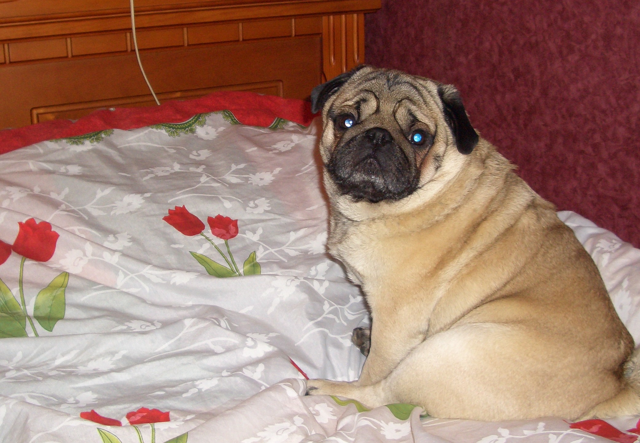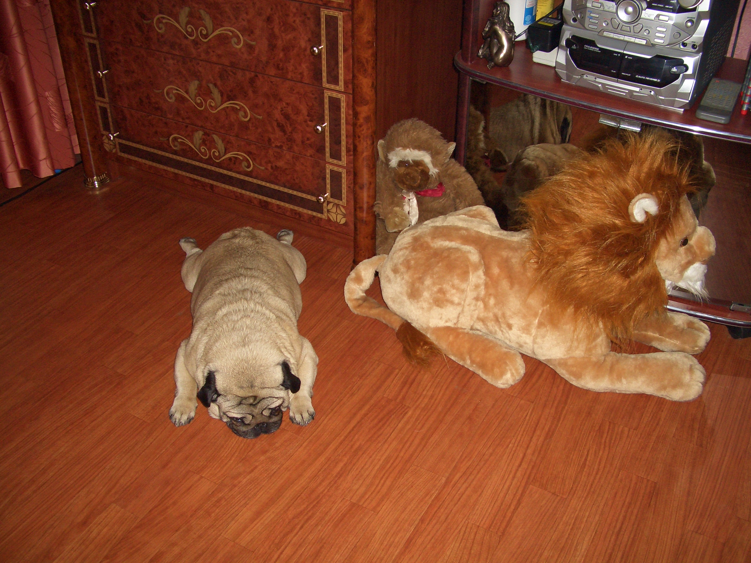 А близко - это вообще супер! Мопсы так смешно сидят, сразу такие бочки выпирают, попа тооооооооооооолстая, грудь широоооооокая, складочки прямо собираются :rolleyes: Обожаю смотреть на них в такие моменты! Спасибо за фотки, Ксюша! Так что не парьтесь, моё мнение, что у него всё в порядке! Всё равно он самый-самый любимый, в чём я нисколечки не сомневаюсь!!!