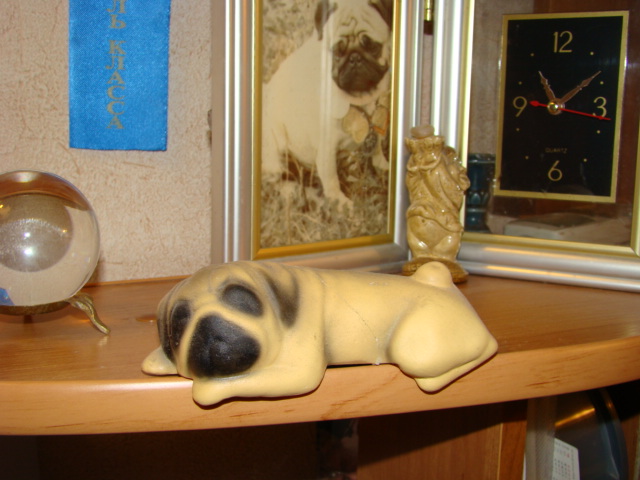 У меня много всяких разных мопсиков и деревяных, и металлических, и плюшевых (уже, правда, успели съесть голубого мопса из мультфильма и маленького мопсика размером с месячного щенка), и даже две картины. Просто то, что показала мне самой больше всего нравиться.