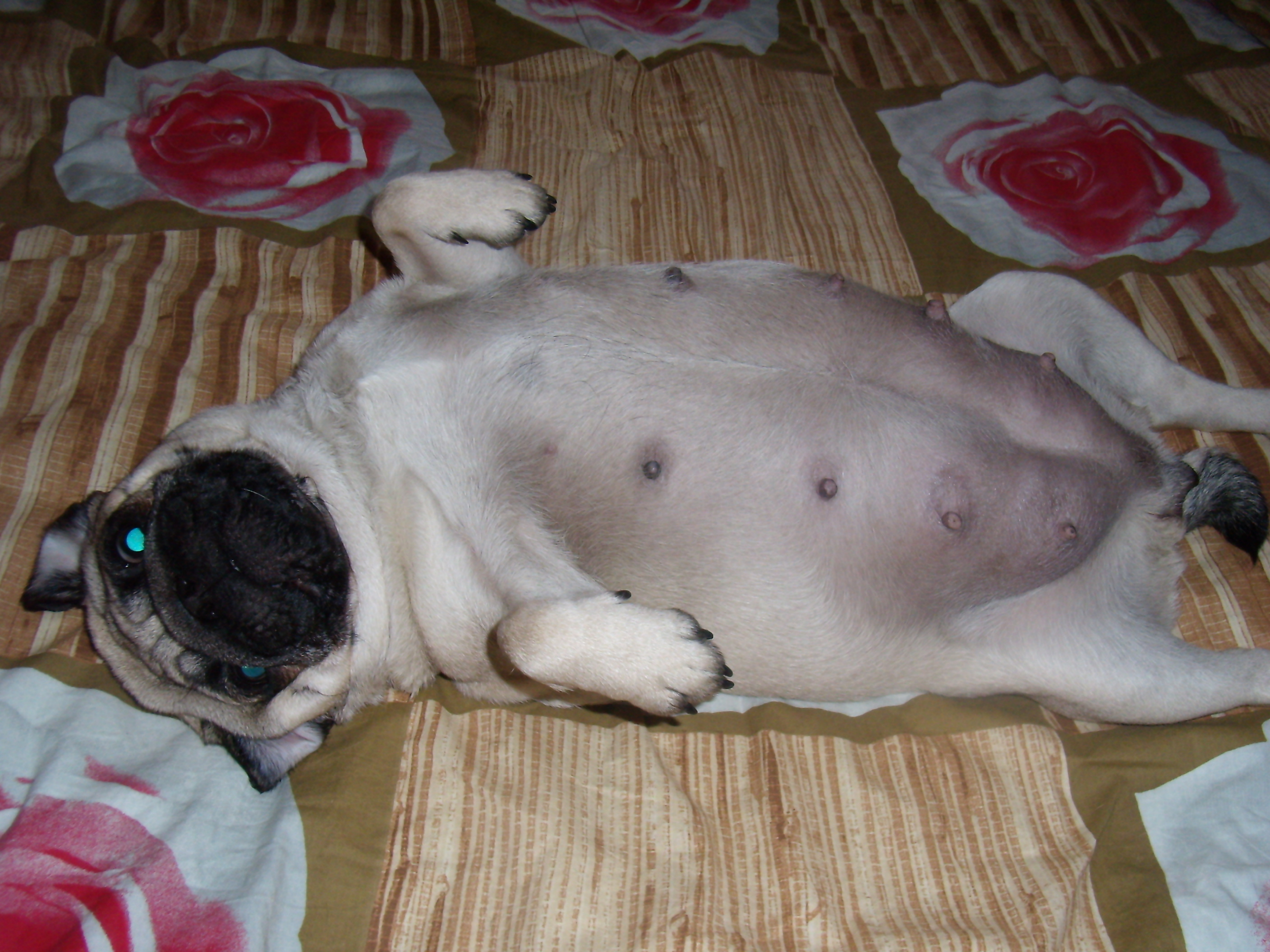 Спасибо,мопсомама за нужные советы ,сегодня у неё из петли висела сопля желто белого цвета . Скажите что это значит(она была достаточно большой)? Это выделения при беременности.Я так понимаю,что вам рожать вместе с нами,где то после 11 числа. Кормите мамочку хорошо и всё будет ОК! |