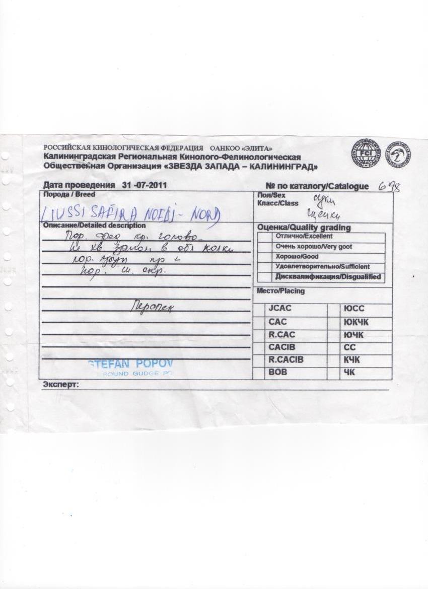 Маша,поздравляю с дебютом тебя,как хендлера.Люсёнка с участием в выставке и хорошей оценкой.Мы выставлялись под Поповым.Не в белом костюме ходил?Его любимый цвет. (IMG:style_emoticons/default/biggrin.gif) Маша,Стефан очень обращает внимание,как выставляется собака.Описание дал шикарное.Холка заполнится,вы ещё не взросая собака,а щенок в развитии.С оценкой могли напутать помощники судьи.Попов поставил оч.перспективна,а помощник написал перспектива.Такие "попадосы "частенько бывают.Маша,вы с Люсси молодцы!
