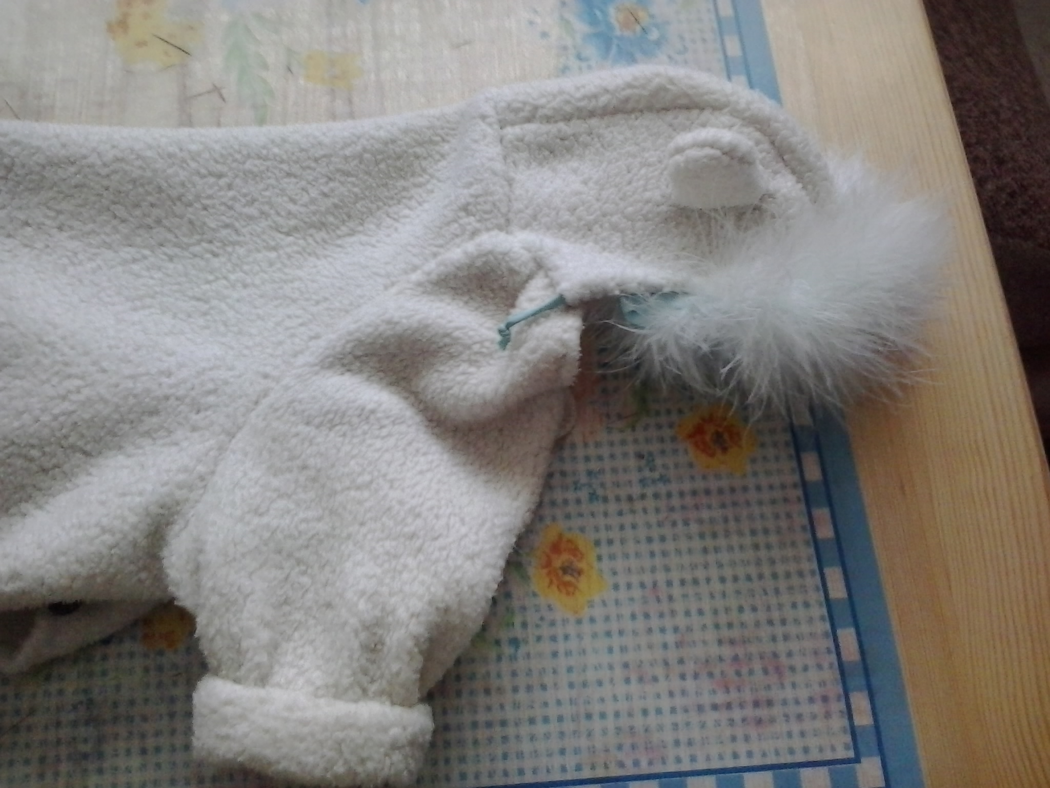 Спасибо Мариночка, только я в компьюторе дуб дубом и как это сделать я не знаю (IMG:style_emoticons/default/unsure.gif) , я лучше расскажу . Я взяла готовый костюмчик и с него сделала выкройку на бумагу , получилось три детали , а потом перенесла на ткань и шила по аналогии , ну а остальное ваша фантазия - ушки, шапки и прочие украшения (IMG:style_emoticons/default/rolleyes.gif)