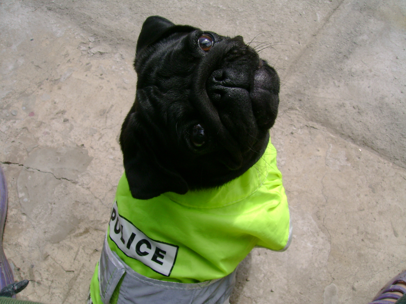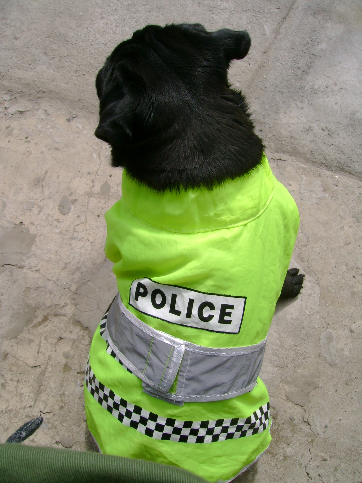 В СУПЕРПРИКОЛЬНОМ наряде! Это курточка у Моны такая или дождевичок? Шили на заказ? Это я в секен хенде взяла патрульную накидку и сама сшила из неё дождевичок. Получился удачным при раскрое. Совершенно не стисняет движения собльки. А сеьезная надпись повергает народ в улыбку. |