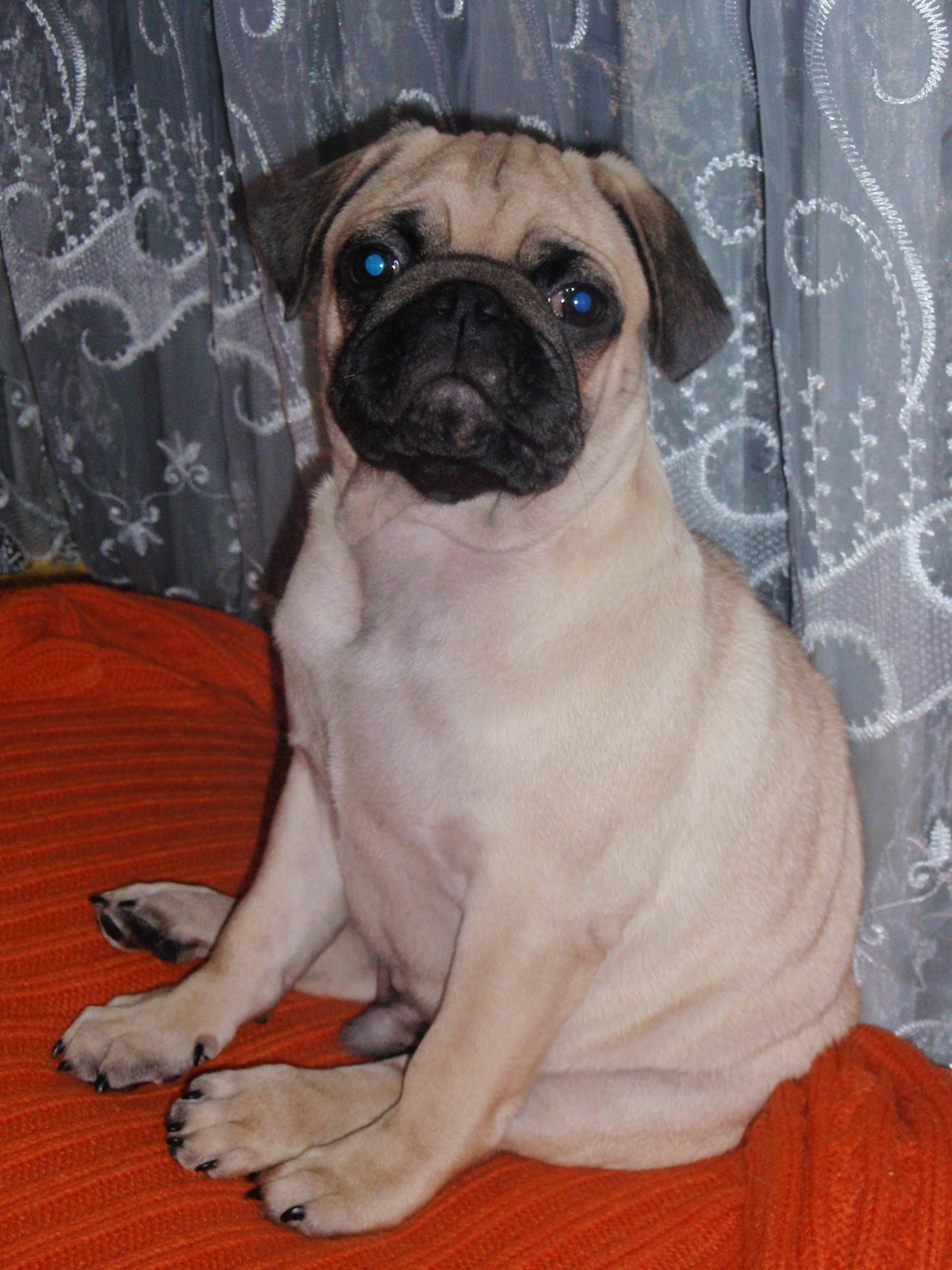 В нашей семье еще есть папа Виталик и попугай-карелл Ярослав. Мы очень дружные и мы на самом деле счастливо живём. С папой я обожаю играться, беситься, пока мама нас не успокоит, а с мамой я люблю спать и смотреть ей так грустно в глаза, она быстро раскалывается и даёт мне бублик! Папа почему-то всегда называет меня "Мызянный")) я так думаю, что это из-за чрезмерной любви и опеки моей мопсомамы) Родился я 2 декабря 2011 года в Луганском питомнике мопсов "Плюшевое солнце". Нас там было много. И мы теперь каждое воскресенье видимся с семьей. Я их не забываю и каждую неделю ходим к друг другу в гости, дарим подарки. По воскресеньям мы собираемся с сестрами и братьями погулять, нас примерно 15-20 мопсов гуляет!!!! Так весело!!! И папа и мама, даже бабушки с нами гуляют!! Хочется много всего рассказать, та думаю места на форуме не хватит)) Буду рад новым друзьям ! |