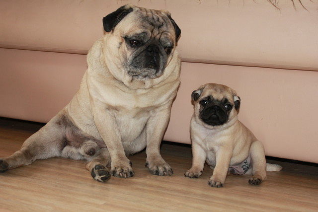 Скоро состоится наша первая прогулка! Очень интересно, как она пройдет? Как малышка будет реагировать на прохожих? Ведь дома она настороженно относится к гостям, а кто не понравился - может обгавкать! Я заметила,что она не любит людей в верхней одежде. Оля, а это ...почти известно. Она пару дней будет очень осторожно гулять. Ей все в новинку (IMG:style_emoticons/default/rolleyes.gif) Что такое улица она знает, в погожие денечки они гуляли в саду на солнышке. (IMG:style_emoticons/default/air_kiss.gif) Её мама Лика имеет подпольную кличку "Охотница"...все птицы её....причем носится как вертолет за ними (IMG:style_emoticons/default/yahoo.gif) Что касается чужих людей.....черные мопсы, но это только мое личное наблюдение, не оч любят темноту и людей в темном!!!! (IMG:style_emoticons/default/ph34r.gif) А Ваша родня тетушка Капа, сестра однопометница Ликуси....не любит маленьких детей....в детстве, ей было где-то 8-10 месяцев получила удар лопатой по голове (IMG:style_emoticons/default/unknw.gif) Причем мама с мальчиком. Сами к нам подошли....спросили можно ли погладить, я разрешила....а потом как двинет ей...она бедолажка аж присела с визгом....вот с тех пор не разрешала мелким подходить к нам, а Капуся видимо запомнила.... (IMG:style_emoticons/default/sorry.gif) Вот такие мы Ваши родственники!!! (IMG:style_emoticons/default/wub.gif) Зюмочке, от мамы и тетушек горячие почмоки и обнималки!!!! (IMG:style_emoticons/default/air_kiss.gif) (IMG:style_emoticons/default/air_kiss.gif) (IMG:style_emoticons/default/air_kiss.gif) А это сестра Зюмы, по маме разница у них 1 год и 3 мес. Живет в Пскове!!!! (IMG:http://f4.s.qip.ru/11BE1KcKr.jpg) |