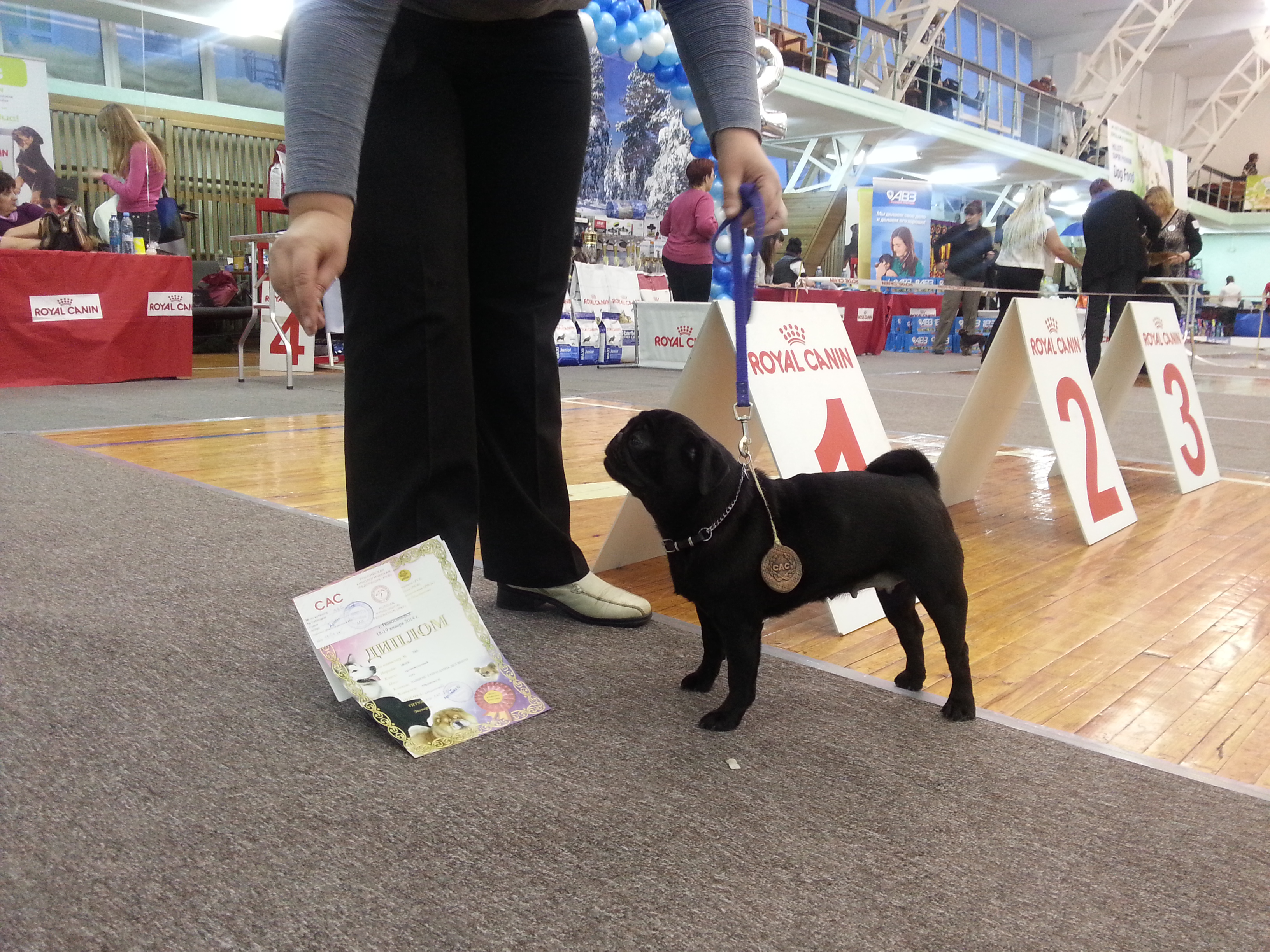 Мой мопсосынок Ланвенг Хай Тек для Мамкиной радости (Закари) (11 мес.) победил на выставке 30.11.2014 г.Новосибирск под экспертизой Жук Г.И.