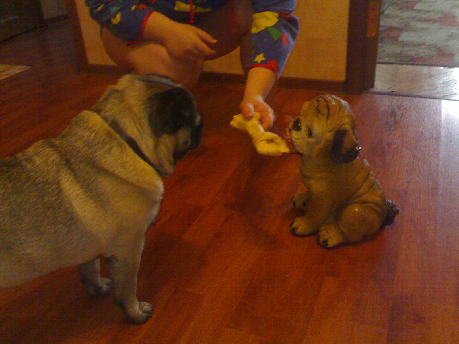 Какой мопсюн чудесный! Юлечка, а ваши мопсики не пытаются его усыновить?