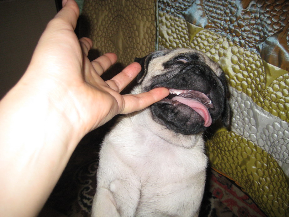 Вы подумайте у нас людей есть руки и губы, чтобы выразить свои чувства, а у нее только зубы и язык))). Главное отучайте от сильных погрызушек, чтобы не вошло в привычку. Она у Вас очень сообразительная все поймет.