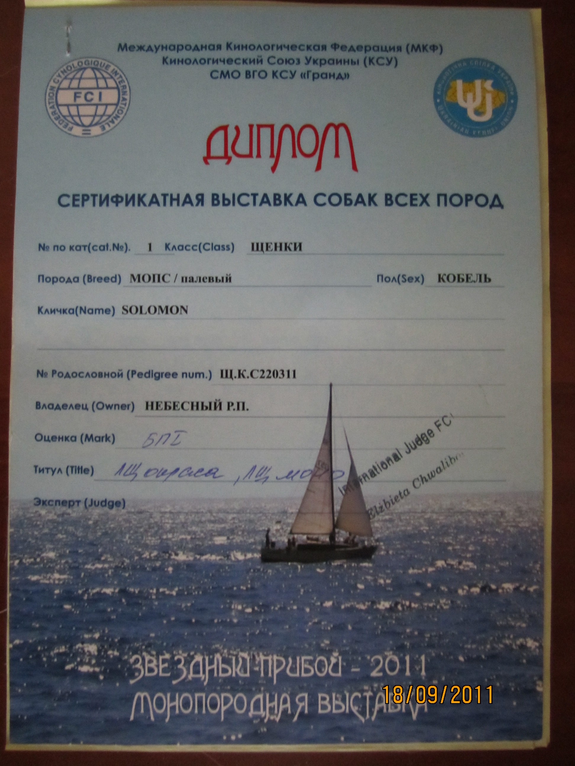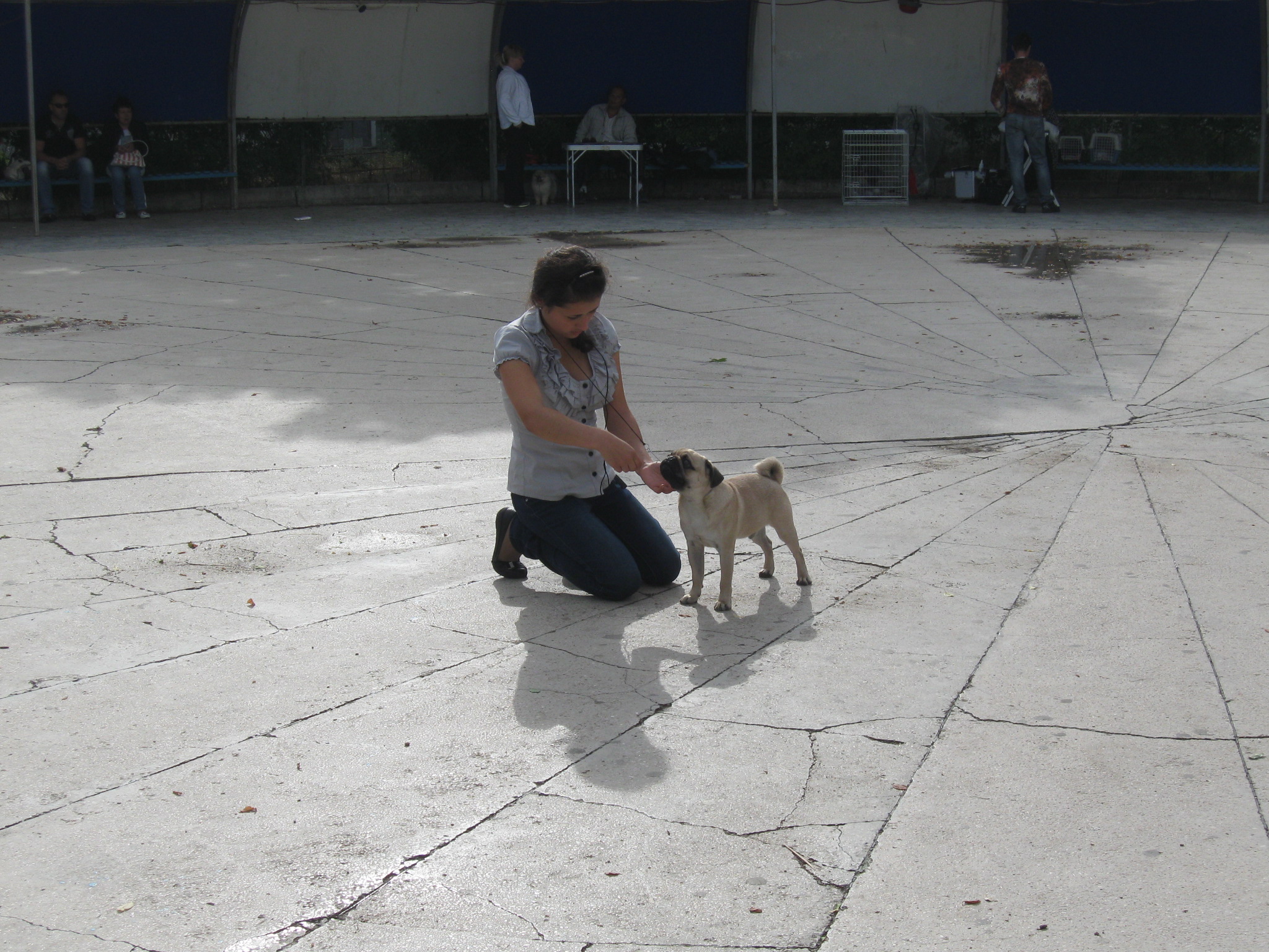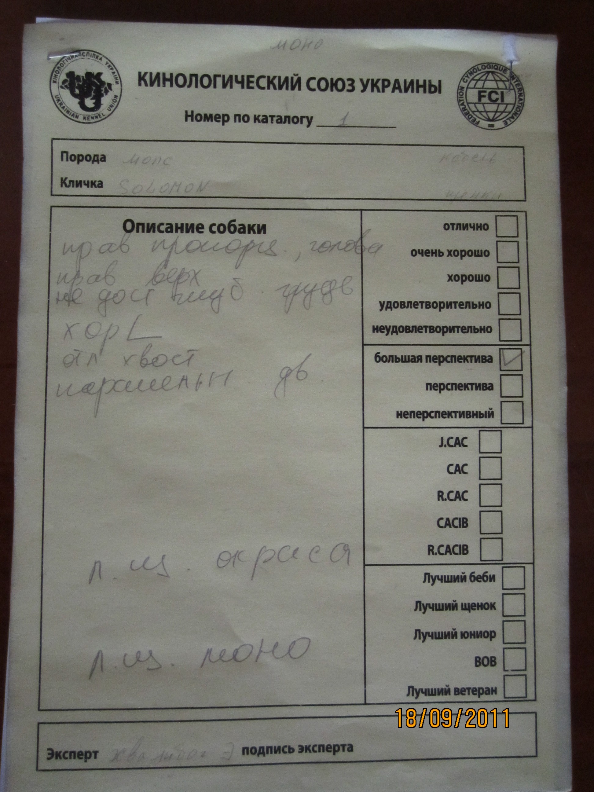 Сегодня выставка САС и моно мопсов. Мы на САС не регистрировались, т.к. эксперт из Украины. Титул не получим (щенкам еще не дают), а описание посчитали что более ценное у иностранного эксперта. Моно мопсов судила Элизабета Хвалибог. (Польша).