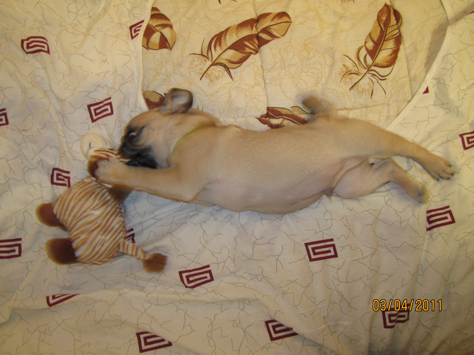 у моей коллеги есть мопс. Когда мопсюшка была маленькая с ней приключилась такая история - хозяйка все переживала, что щенок голодный и кормила, кормила, кормила. В один из дней хозяйка пришла домой, а собака лежит на полу, скулит и встать не может. Щенка сразу же отвезли в клинику. Сделали клизму, промыли желудок, у щенка было ожирение такой формы, что он не мог подняться на лапы. Месяц жил на кефире. Отходили и все закончилось хорошо. Вот я и переживаю, что что-то подобное может быть если СЕмёна много кормить. Ему сколько не дай он все равно всю миску вылижет. Врачи тогда хозяйке сказали, что если бы она сразу не привезла щенка, через пару часов она просто умерла бы((((((