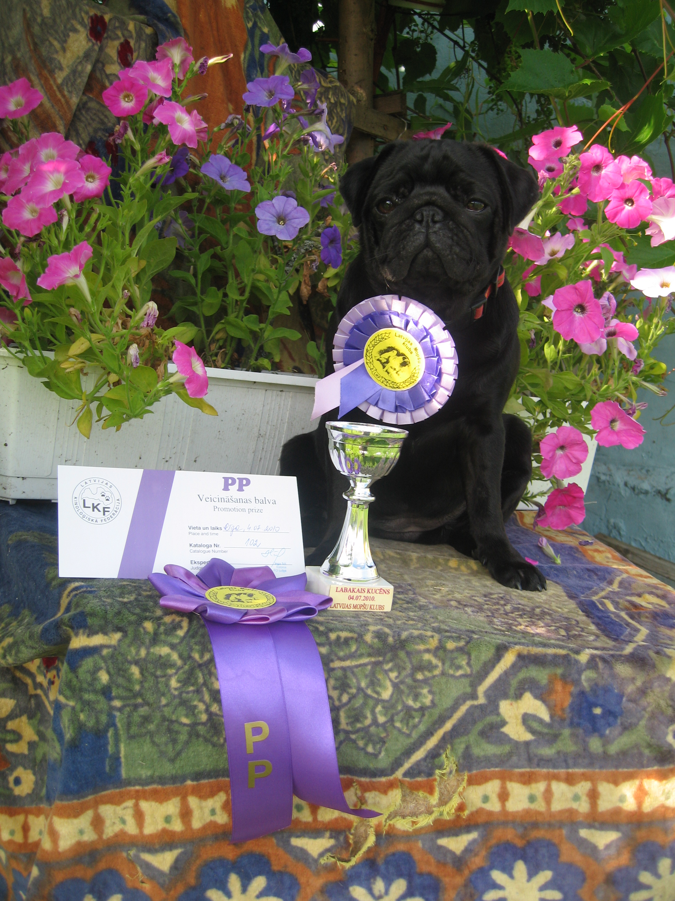 ВСЕ дети и взрослые выставляются ,только мамочка НЕНСИ на заслуженном отдыхе, но мне так хочется с ней выйти в ринг!!! малыш патрик имеет J CAC J BOB ну и детство его было с победами! девочки имеют оценки отлично и парамон тоже ! ребята с патриком возвращаются в МОСКВУ тогда я буду выводить ПАРАМОНА ! ОНочень красивый малыш ( нехотела создавать сама себе конкуренцию)ну пока все !!!! ну вот теперь вы знакомы со всеми нашими питомцами!!!!! УДАЧИ ВСЕМ! СПАСИБО ЗА ВОЗМОЖНОСТЬ ОБЩЕНИЯ!