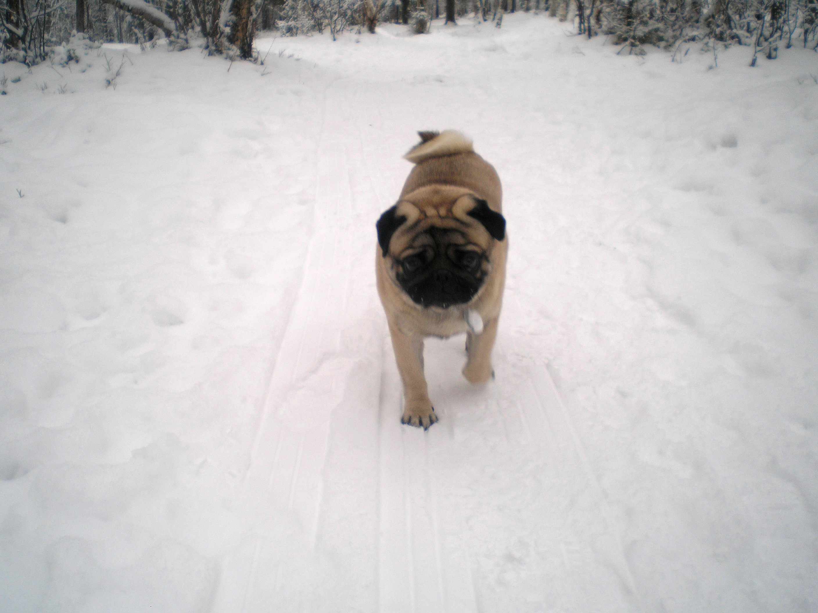 У нас во всю зима. Сегодня даже с морозом и ледяным ветром. Замерзли как собачата с Боников....пришли домой и продрыхли весь день. Себя сфотографировать не смогла а вот Боника -