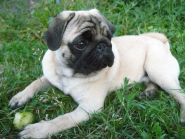 Хотя наш мопсеныш и далек от идеалов красоты (уши временами складываются конвертиками, хвост пока не свернулся как полагается, да и мордашка затемненная), но для нас он самый лучший и красивый.