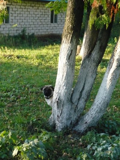 Ой,и хто это там из-за деревца выглядывает?))))Симпатичненький мопсик