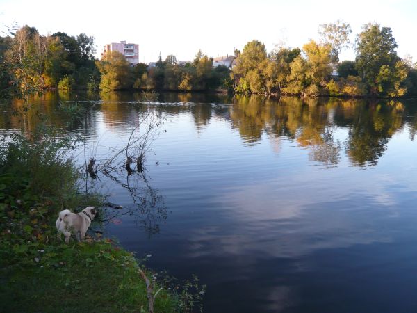 Красота-то какая! А Филимоша, само очарование, особенно заигрывающий взгляд из-за дерева и умиротворение глядя на воду.