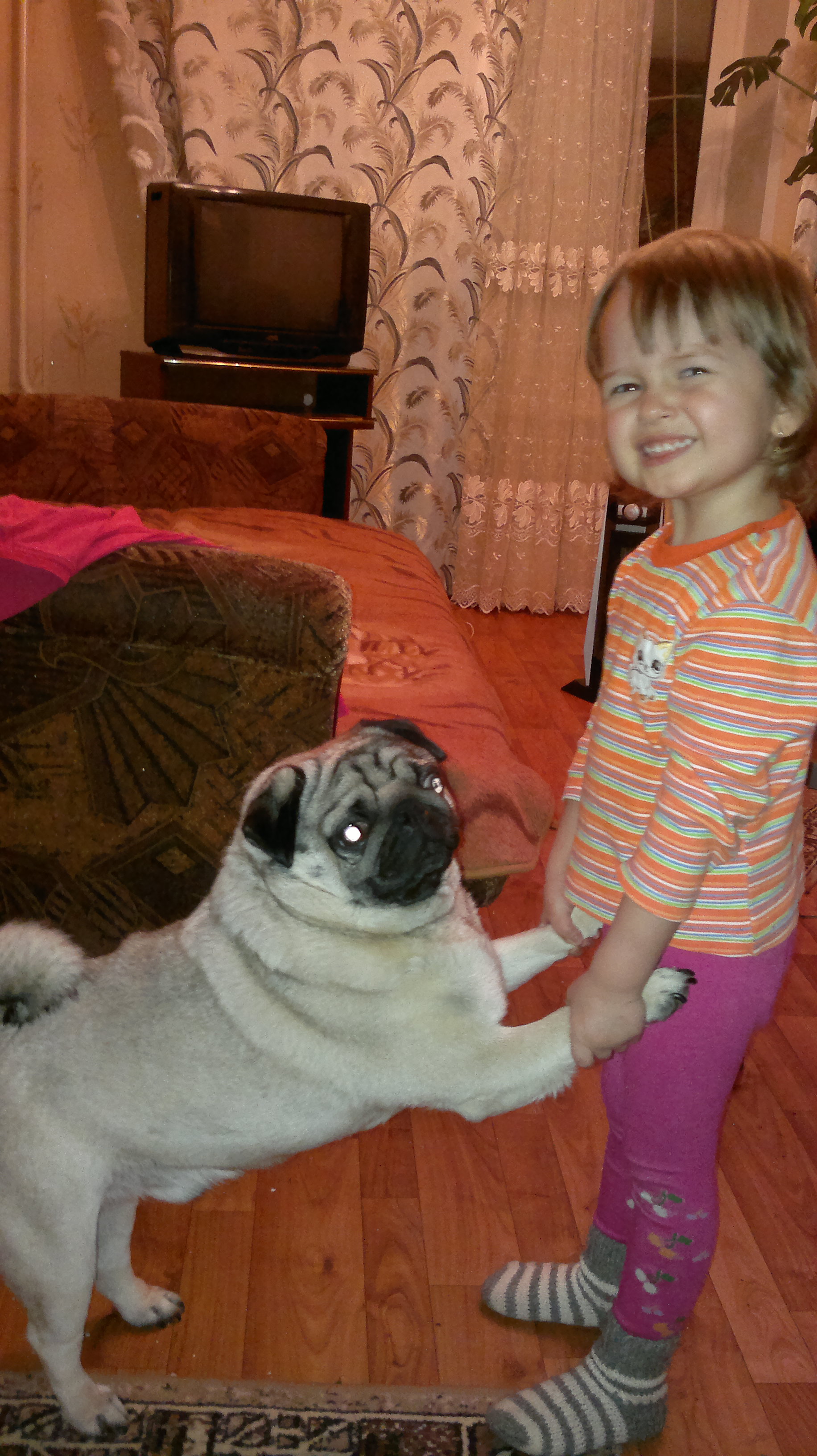 В ночь с 3 на 4 июля потерялся мопс. По фотографиям, которые расположены выше я на сто процентов уверена, что это моя собака. Кобель, 5 лет, зовут Арчи. Особые приметы: достаточно крупный, очень упитанный, окрас светлый, на морде ярко выраженная "маска-очки". На загривке ооооочень приличная складка, ярко-выраженные складки на морде, массивная грудь. Глаза немного косят, в правом глазу маленькая белая точка (немного похожа на бельмо, но ооооочень маленькая, дефект с рождения). На морде, правее от носа маленький "прыщик-бородавочка" темно-телесного цвета (как будто кто-то укусил), на щеке родинка, из которой растет ус. Практически всегда бегает с открытой пастью и как будто улыбается, морда настолько милая, что ни может не вызвать улыбку у проходящих мимо. ОООООчень добрый, любит когда его чешут, стоит только погладить или почесать загривок сразу падает на пол и просит почесать животик. На пузе клейма нет, но оно как-бы грязненькое. Очень доверчивый и хорошо ладит со всеми, и детьми, и взрослыми, и другими собаками. Не развязан, так что на сук, как на интересное создание, не обращает внимания, если только поиграть. Ушел с Брянской улицы (м. Киевская), его видели в районе Студенческой улицы и Кутузовского проспекта. Предположительно был отдан волонтеру, контакта с которым нет, это девушка. Мог быть отдан через 5-7 дней после пропажи из дома. Очень любит сидеть на "попе", выставляя заднюю лапу вперед и немного в сторону, если лежит, то "лягушкой" или на спине. На нем был ошейник коричневого цвета, подрезанный, т.к. был длинный. Арчи уже скорее всего нашел новый дом и я уверена, что он "хороших" руках. НО, я УМОЛЯЮ вернуть его, будьте милосердны. Это мое все. Я обещаю вернуть Вам деньги, если Арчи достался Вам не просто так. Я обещаю подарить Вам молодого щенка, который будет любить только вас и так же сильно, как мы любим друг друга. Поиском Арчи я занимаюсь спустя столько времени, потому что я только сегодня вернулась в Москву. Я уезжала на сессию и моя мама ничего мне не говорила о его пропаже, чтобы я сдала все экзамены. Чуть раньше в этой теме писал мой брат, что он хозяин и оставлял свой телефон, его с первых дней ищет вся моя семья. Я больше не знаю, что я могу еще добавить, я просто не нахожу слов, чтобы выразить мое горе. Если Вы новый хозяин и сейчас читаете это сообщение - УМОЛЯЮ, ВЕРНИТЕ! Если Вы просто читаете это сообщение, не оставайтесь безучастным, я буду рада любой информации.